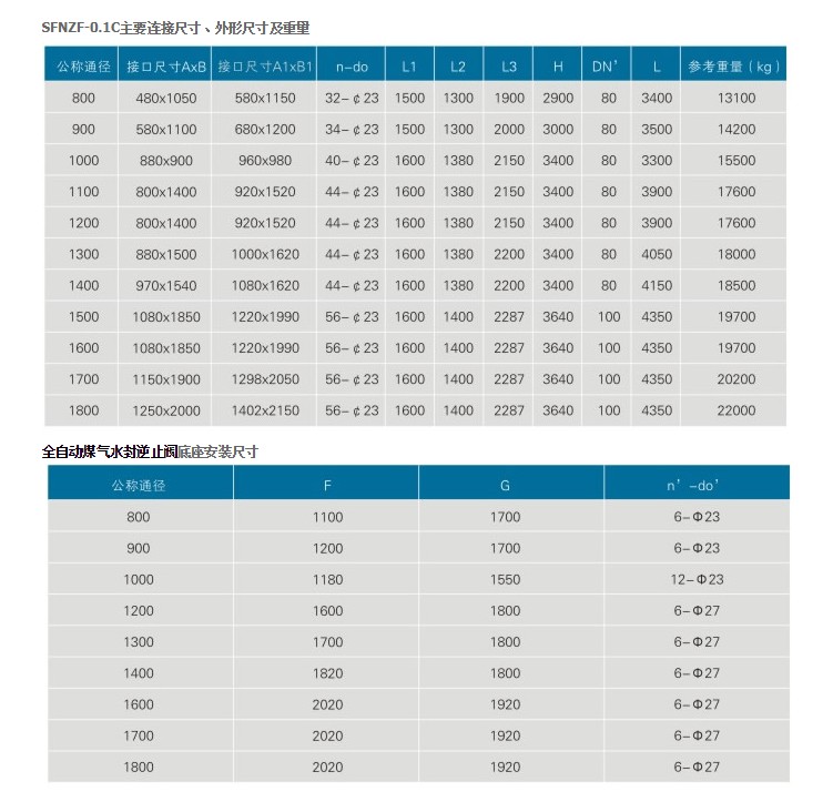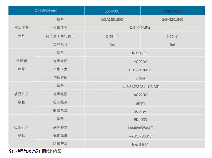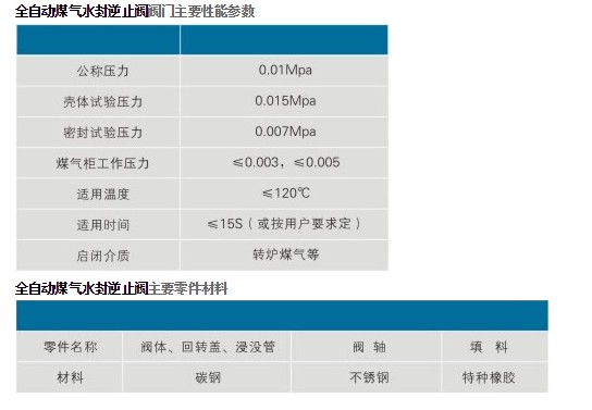 SFNZF氣動煤氣水封逆止閥主要性能參數(shù)